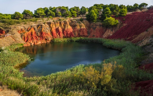 Altri tag (senza riscontro): scogliera, arbusti, cespugli, vulcano, bocca, rosse, marrone, multicolore, natura, arancio, riflessi, cielo, sponde, dirupo, cava, giallo, ocra, rame, sentiero, ripide, indossato, rami.