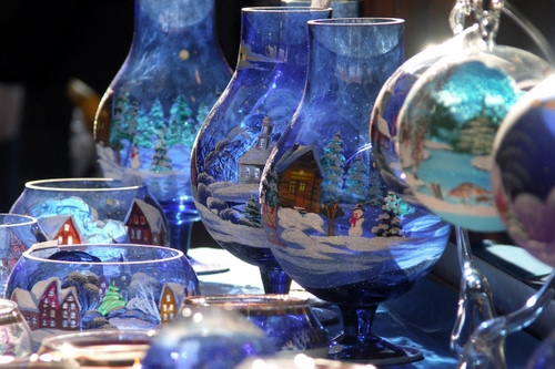 coppe in cristallo decorate con scene natalizie